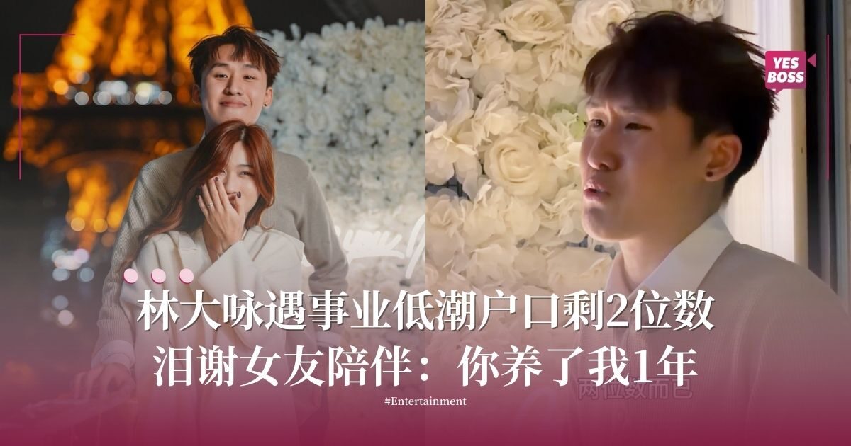 林大咏向女友Nikki求婚时,揭露过去曾经历事业低潮期,当时户口仅剩2位数,得靠女友养1年。