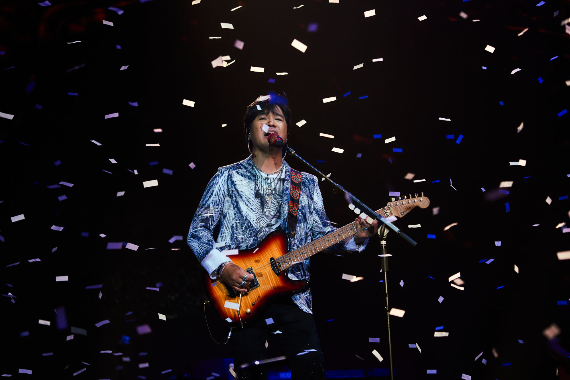 2人在全场呐喊声中登场,以《摇滚区》、《继续转动》、《嗨歌万万岁》三连发开场,厚实高亢的嗓音瞬间点燃现场气氛。尤秋兴分享巡演主题《都是因为爱》的初衷,不仅指向爱情,也象征亲情与友情,希望歌声能成为疗愈与力量的源头。颜志琳则幽默调侃:“我们很多歌是90年代的,不知道现场有没有人那时还没出生?”引来笑声一片。