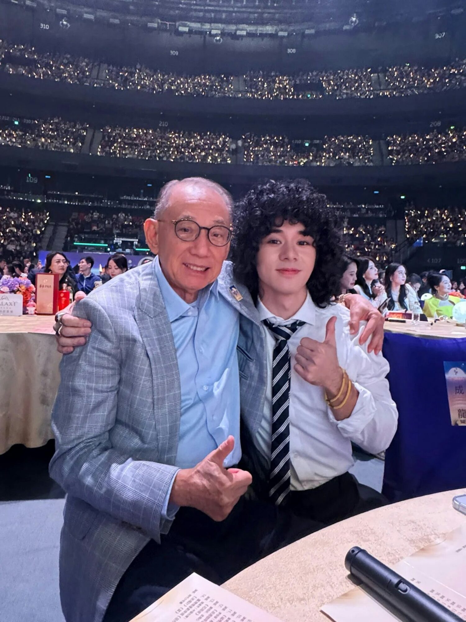 曾比特(右)与英皇娱乐老板杨受成(左)