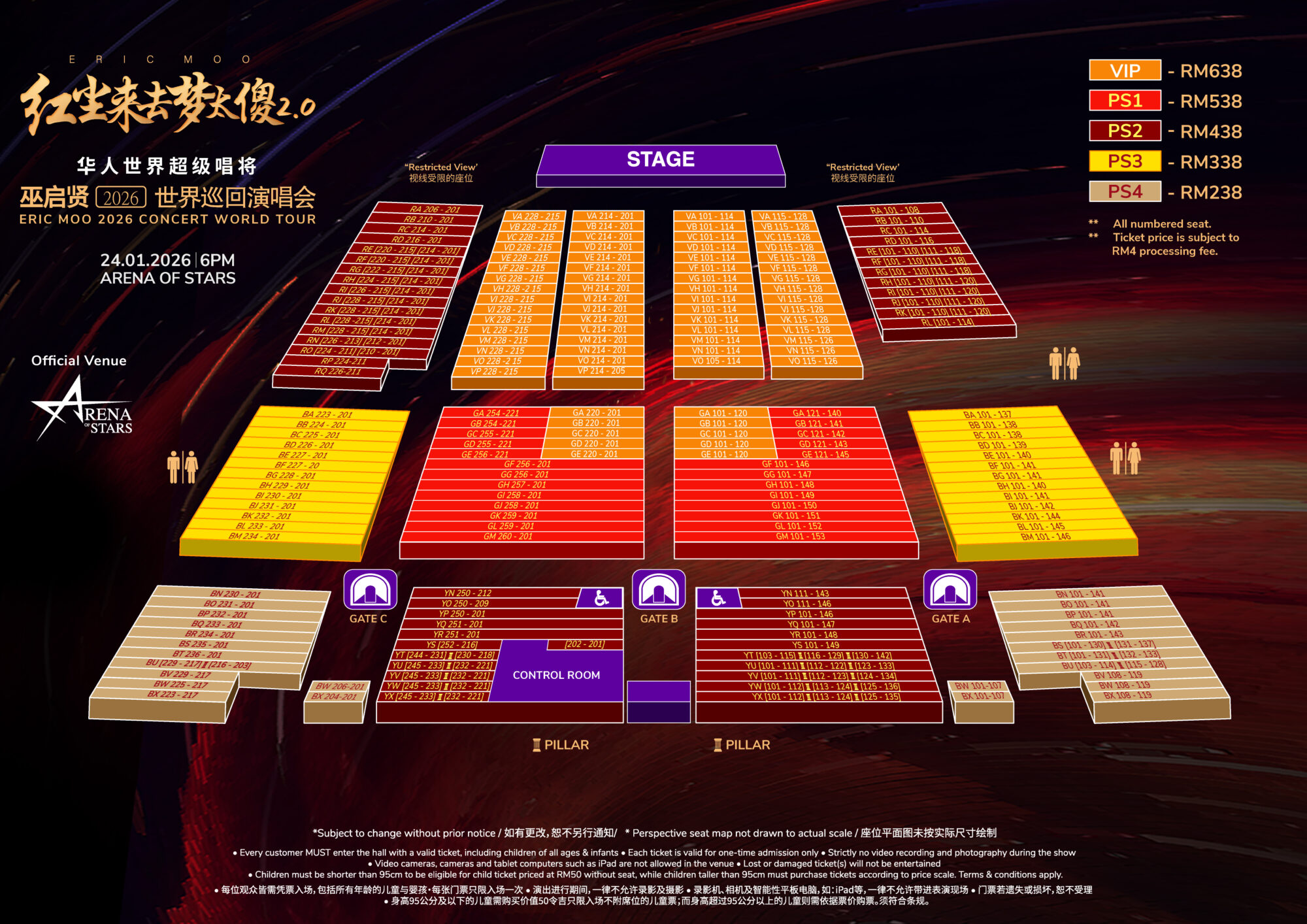 🎫票价:VIP RM638|PS1 RM538|PS2 RM438|PS3 RM338|PS4 RM238