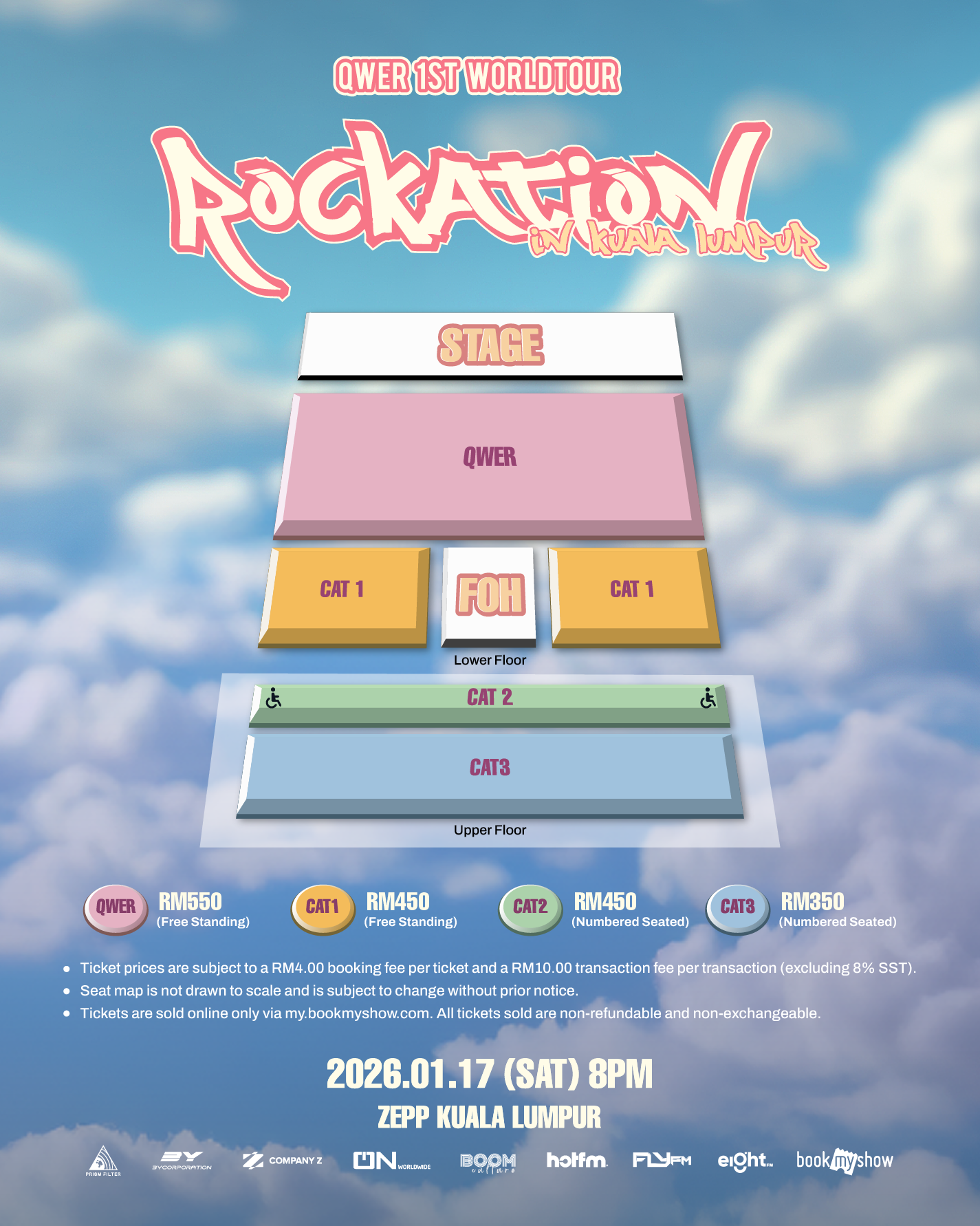 🎫票价:QWER Zone RM550|CAT 1站席 & CAT 2座席 RM450|CAT 3座席 RM350
