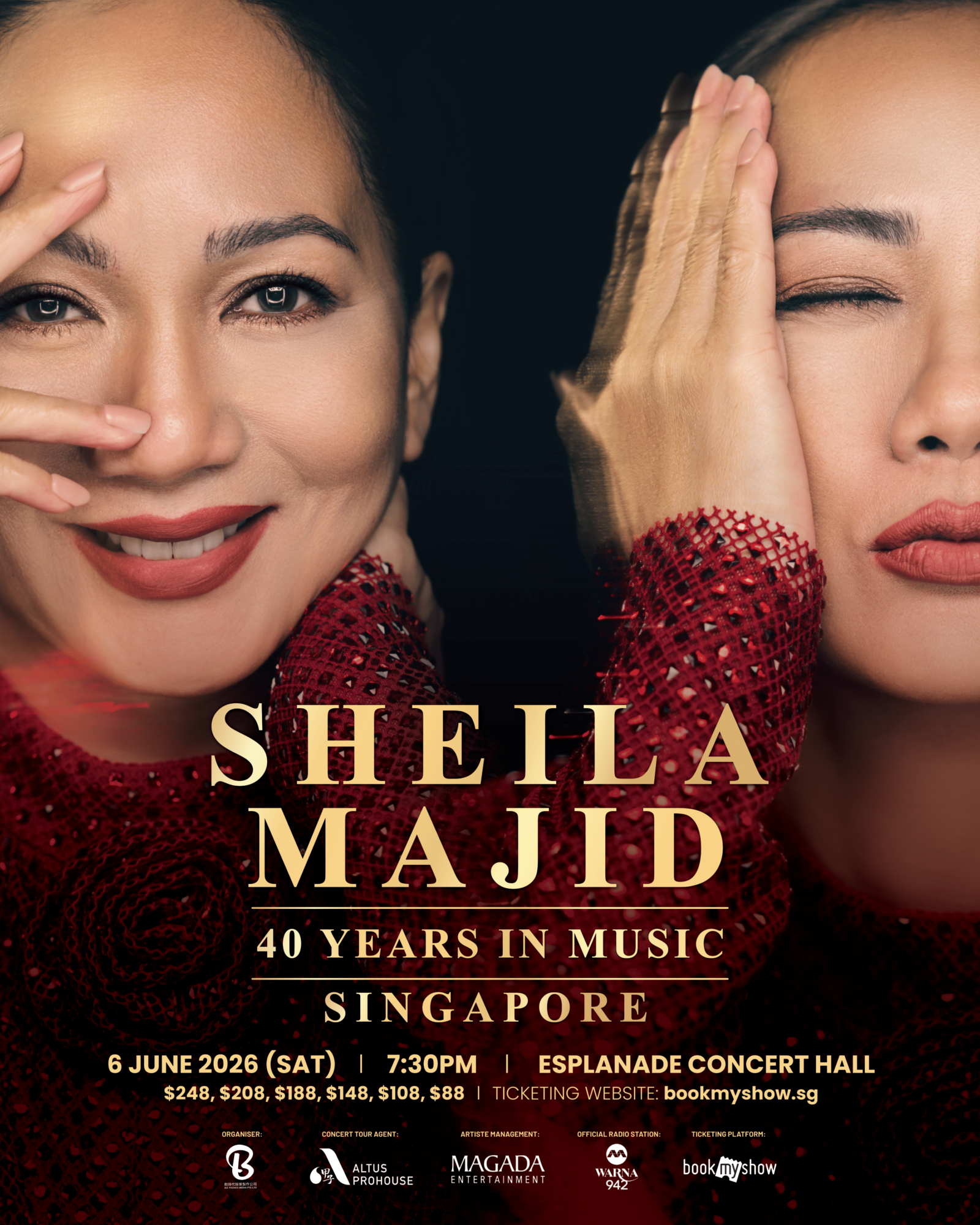 娱乐星闻 Sheila Majid女儿惊喜现身合唱 宣布6月6日唱进新加坡 Sheila Majid演唱会众星云集外,女儿Kayda也惊喜现身与她合唱! Published 6 days ago on November 9, 2025 By 编辑部 出道40年的马来西亚乐坛天后Sheila Majid,8日晚在Axiata Arena Bukit Jalil举办《Sheila Majid: 40 Years In Music》。人缘极佳的她吸引许多圈中歌手好友捧场,当中包括Dato’ M. Nasir、Anuar Zain、Jaclyn Victor、Ella、Misha Omar、Nur Fazura,以及来自印尼的Afgan与Vina Panduwinata。此外,Sheila Majid的女儿Kayda也惊喜登台合唱。 随着大马站结束后,Sheila Majid也宣布将于2026年6月6日在新加坡滨海艺术中心(Esplanade Concert Hall)举办《Sheila Majid: 40 Years In Music》。票价分为$248、$208、$188、$148、$108和$88,并通过 https://bookmyshow.sg/events/SHEILA26 和 https://biztmgptix.bigtix.io/events/SHEILA26 公开发售。 新闻采访或合作邀约,可电邮至 [email protected] Advertisement Related Topics:Featured大马演唱会演唱会马来西亚演唱会 Up Next 朱孝天大嘴巴遭踢出F4 F3 12月启动新歌巡演 Don't Miss 赵露思27岁生日官宣成立新工作室 爆哭喊:以为没办法再当演员了 编辑部 新闻采访或合作邀约,可电邮至 [email protected] Continue Reading You may like 韩国乐团QWER 1月17日大马开唱 3种票价附粉丝福利 巫启贤1月24日大马开唱 票价、座位图释出 李圣杰2月21日生日当天 首次登上吉隆坡舞台开唱 Jessica郑秀妍1月11日开唱 巡演首站献马来西亚 YesBoss好康丨FTISLAND《MAD HAPPY》演唱会吉隆坡站门票 落日飞车3月28日来马开唱 摇滚区站席早鸟票享20%折扣 Click to comment Leave a Reply Cancel replyYour email address will not be published. Required fields are marked *Comment Name * Email * Website Save my name, email, and website in this browser for the next time I comment.