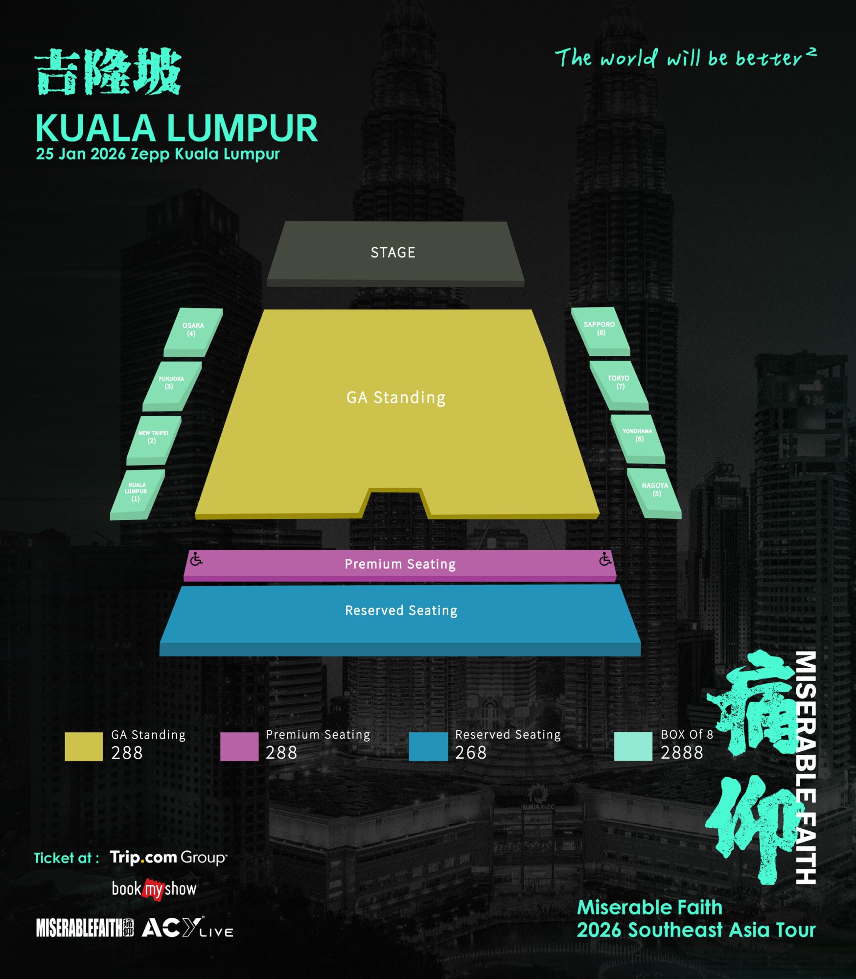 痛仰乐队《The World Will Be Better2》2026东南亚巡演-吉隆坡站座位图