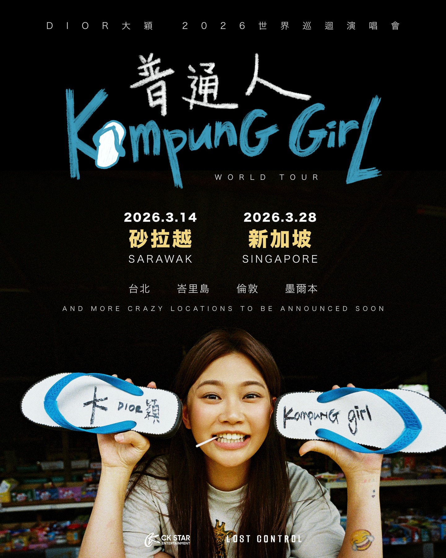 大颖先前曾答应歌迷朋友要到世界各个角落唱歌给大家听,如今真的一一实现了!她在云顶演唱会开演之前,宣布将于明年正式展开《KAMPUNG GIRL普通人》世界巡回演唱会,其中砂拉越站定于2026年3月14日,紧接着于3月28日唱进新加坡,其他巡演城市还包括台北、峇里岛、伦敦、墨尔本等。
