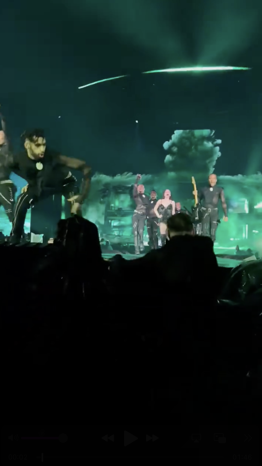 美国天后Lady Gaga于12日在澳洲雪梨雅高体育场(Accor Stadium)举办《Mayhem Ball》巡演最终场时,因突如其来的豪雨导致舞台湿滑。从影片中可见,Lady Gaga演唱《Eden of Garden》时,舞者们在被雨水打湿的舞台上向前行进,过程中其中一名舞者Michael脚步打滑,不慎从伸展舞台跌落。