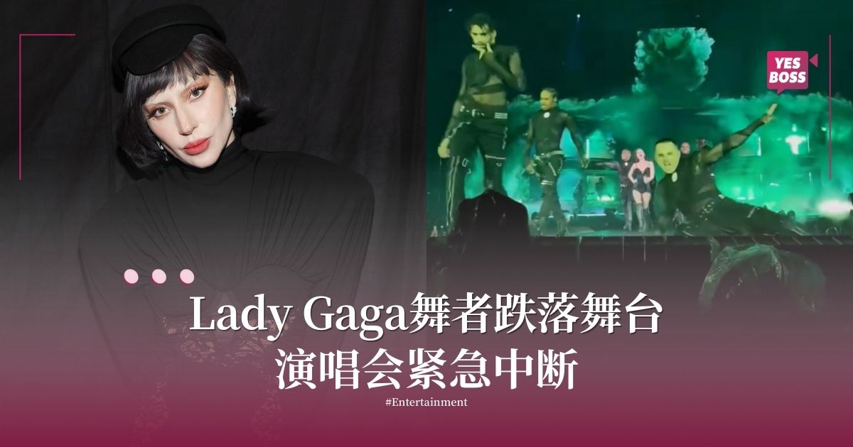 Lady Gaga脚步打滑,不慎从伸展舞台跌落。