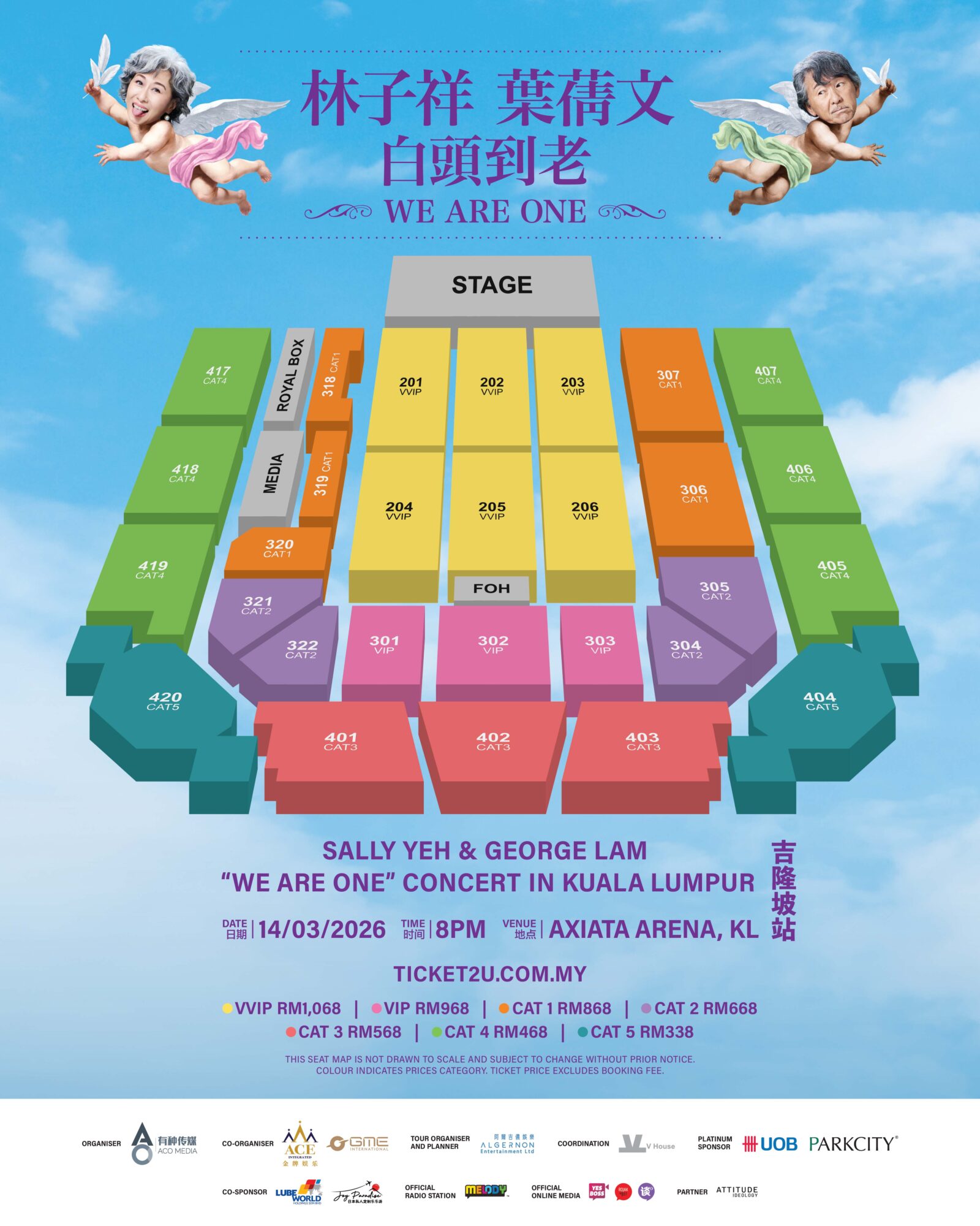 🎫票价:VVIP RM1068|VIP RM968|CAT1 RM868|CAT2 RM668|CAT3 RM568|CAT4 RM468|CAT5 RM338【均为座席(对号入座)、未包含手续费】