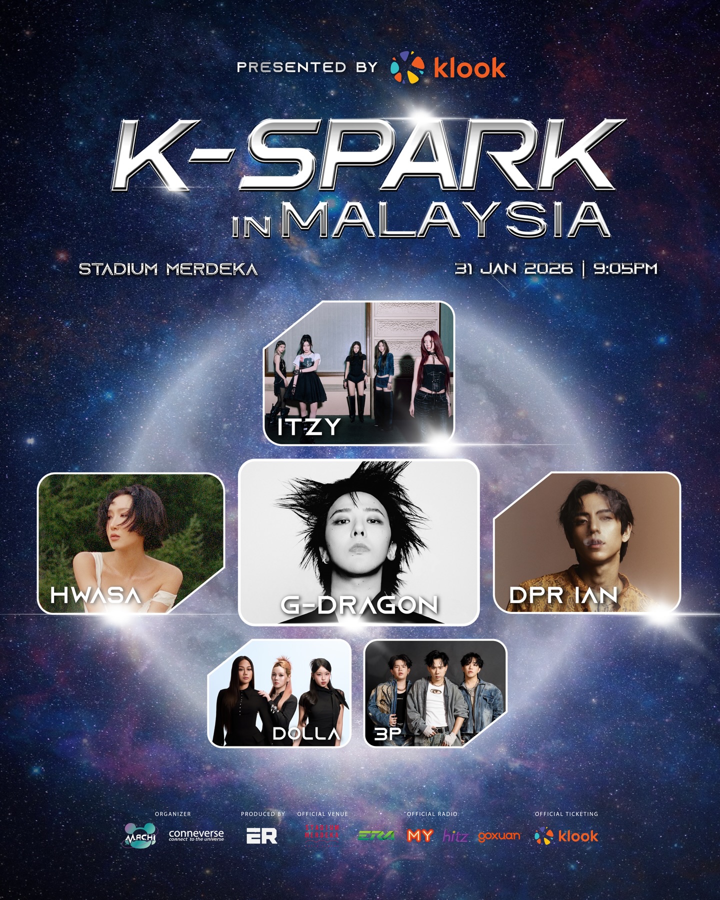 韩国拼盘演唱会《K-Spark In Malaysia 2026》阵容鼎盛,邀来韩国天王G-Dragon(GD、权志龙)、韩国女团ITZY、MAMAMOO成员华莎(Hwasa)、澳洲韩裔男歌手DPR Ian,以及大马女团Dolla与男团3P参与演出。