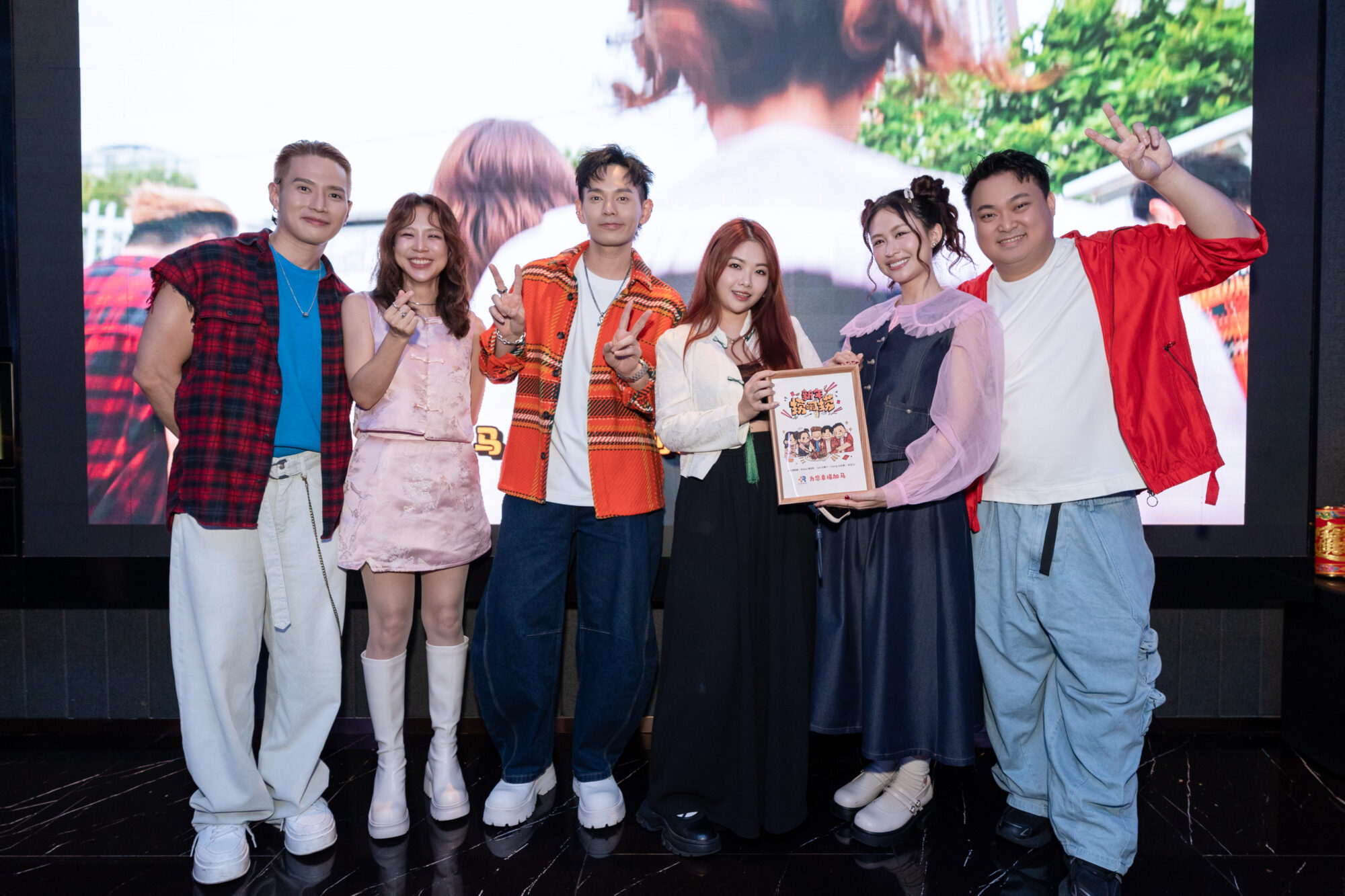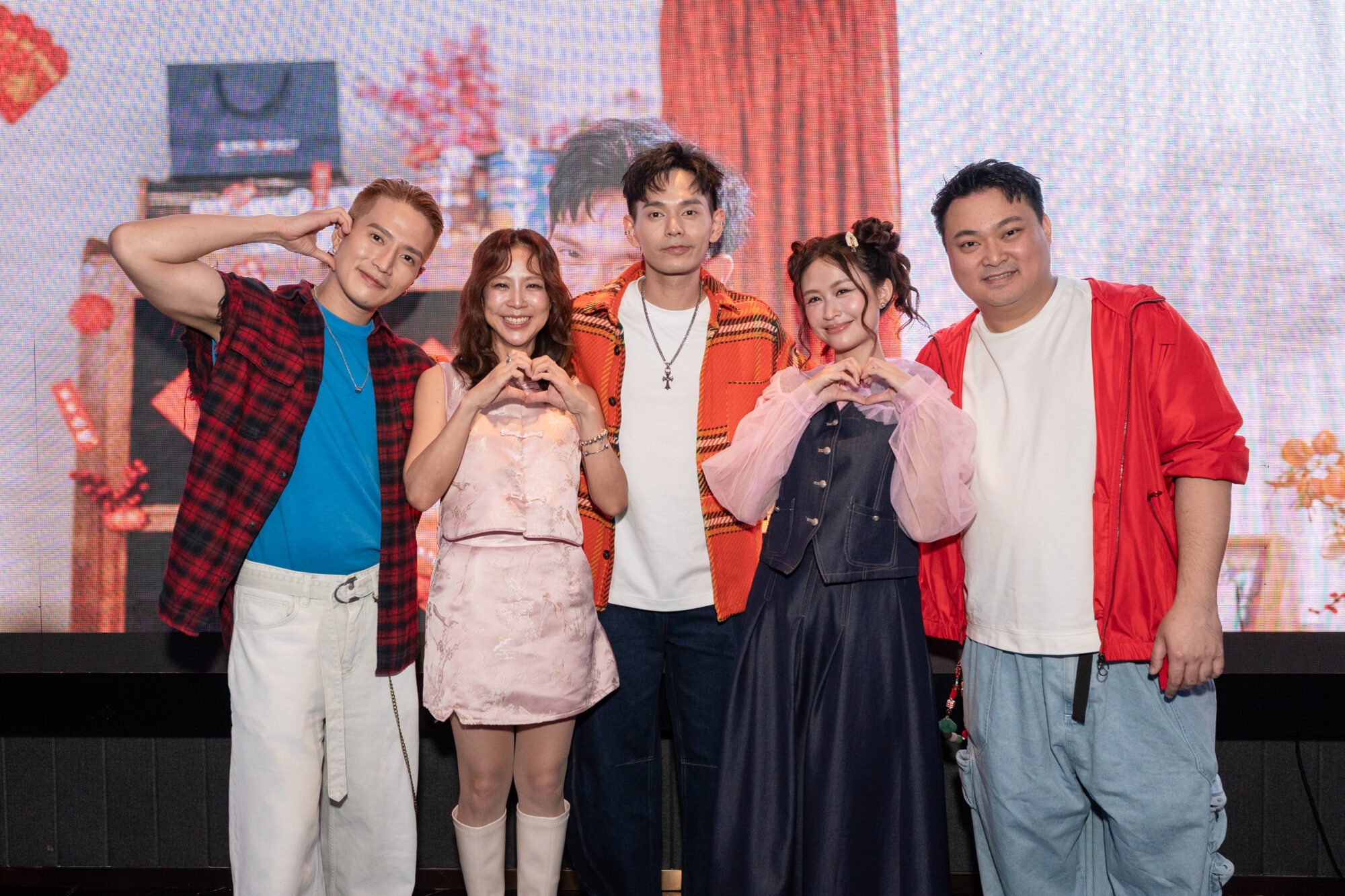 他也自曝拍摄MV时与大家一起跳了“捞生手势舞”,无奈前面跳舞的镜头都被剪掉,让他忍不住直呼:“我生气的是为什么叫我跳舞,累到半死!”Ribbon黄若熙赶紧安慰道:“就是为了让你在后面出现时给大家一个惊喜。”Sam沈展宁也接话说:“那时候是练习,今天记者会就是给你展现的。”说完众人也配合的拿起筷子大跳“捞生手势舞”。