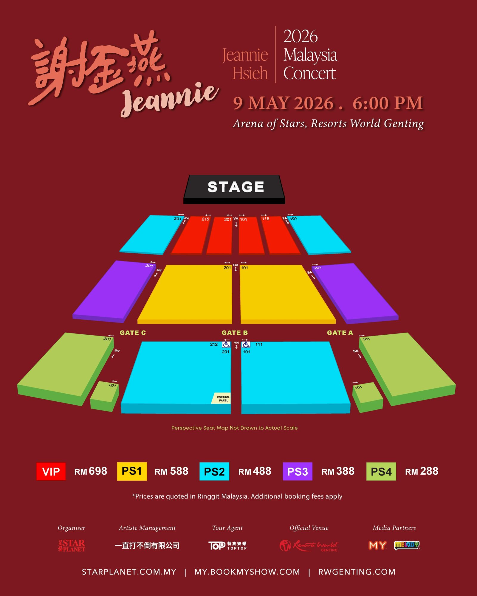 🎫票价:VIP RM698|PS1 RM588|PS2 RM488|PS3 RM388|PS4 RM288