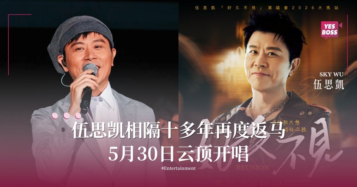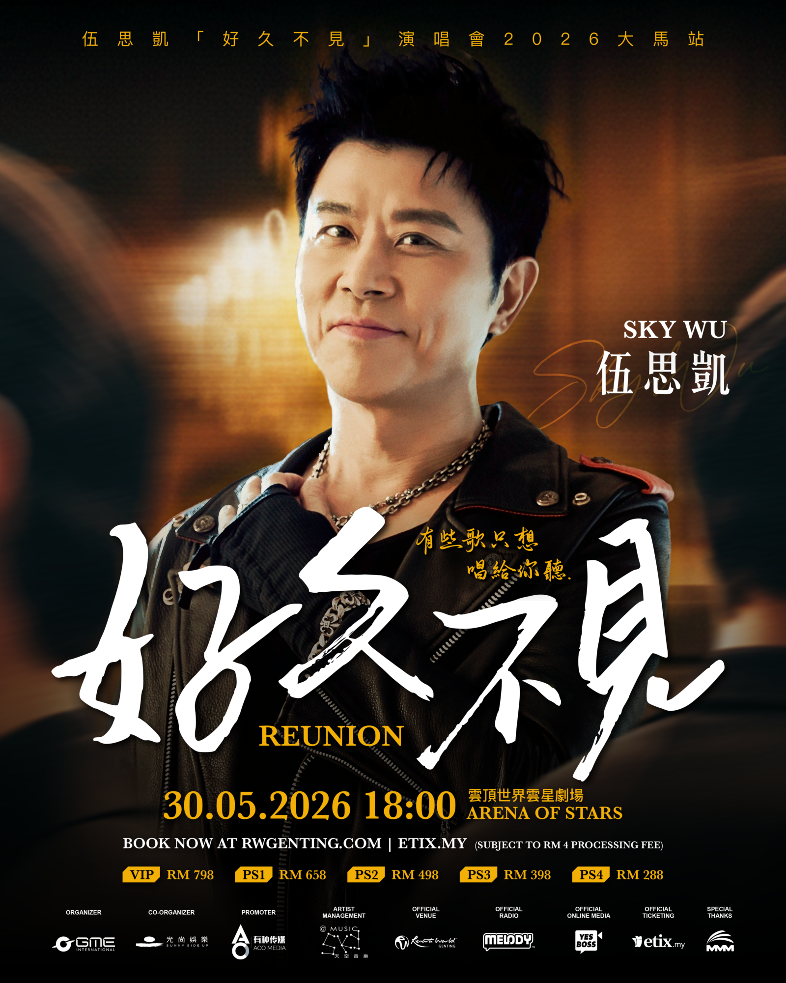 由GME International和Sunny Side Up联合主办,ACO MEDIA担任巡演经纪,YesBoss为媒体伙伴,伍思凯《好久不见》演唱会2026 – 大马站将于2026年5月30日(星期六),傍晚 6时在云顶世界云星剧场举行。