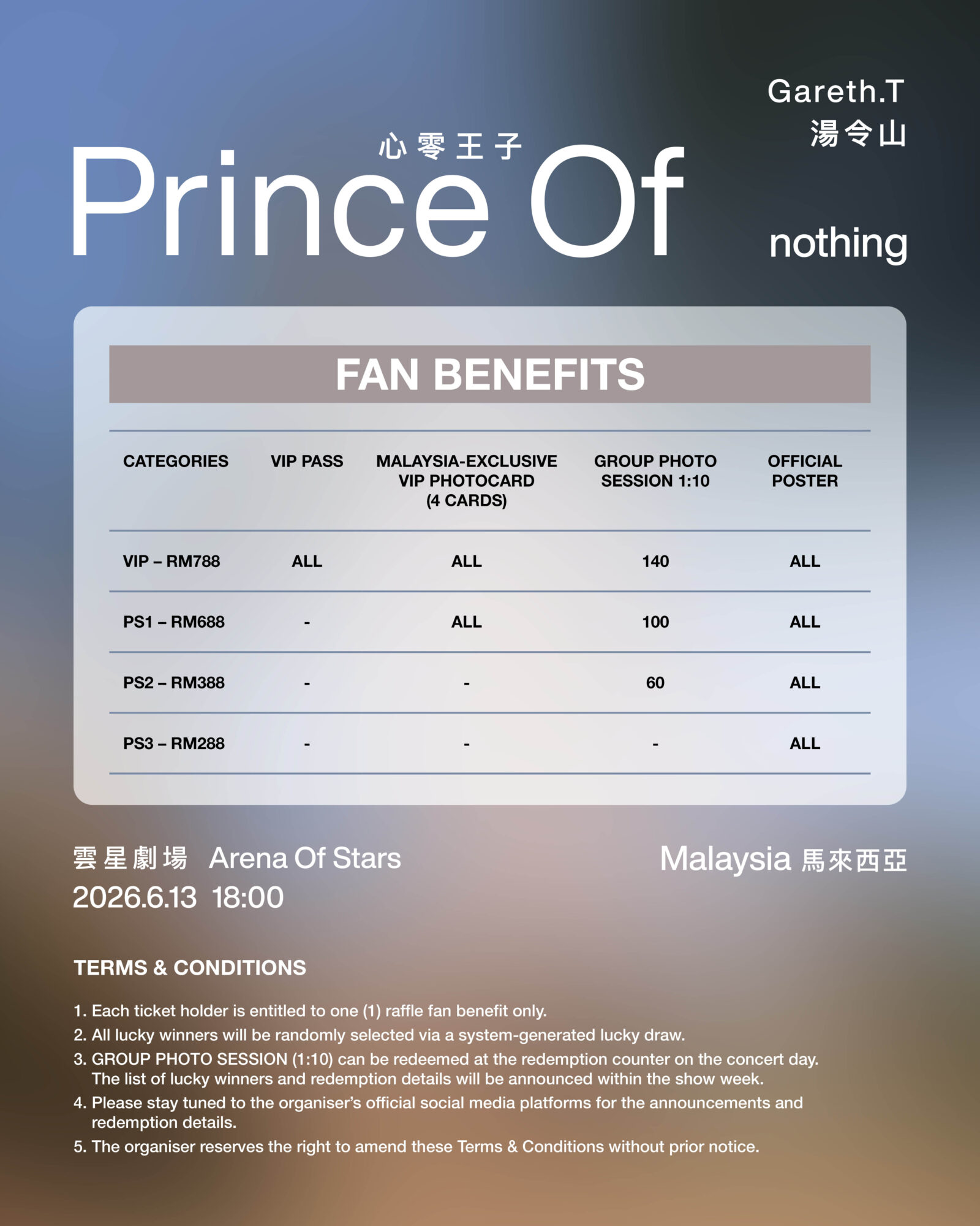 《Gareth.T -Prince Of nothing 汤令山 – 心零王子》马来西亚粉丝福利