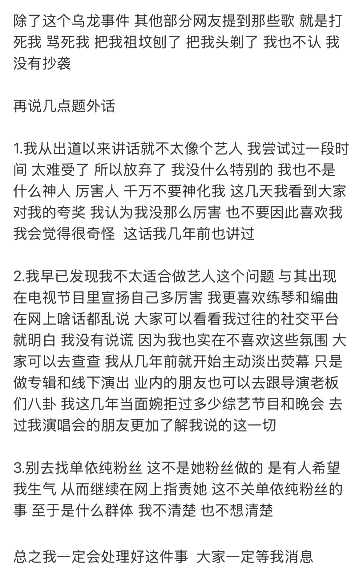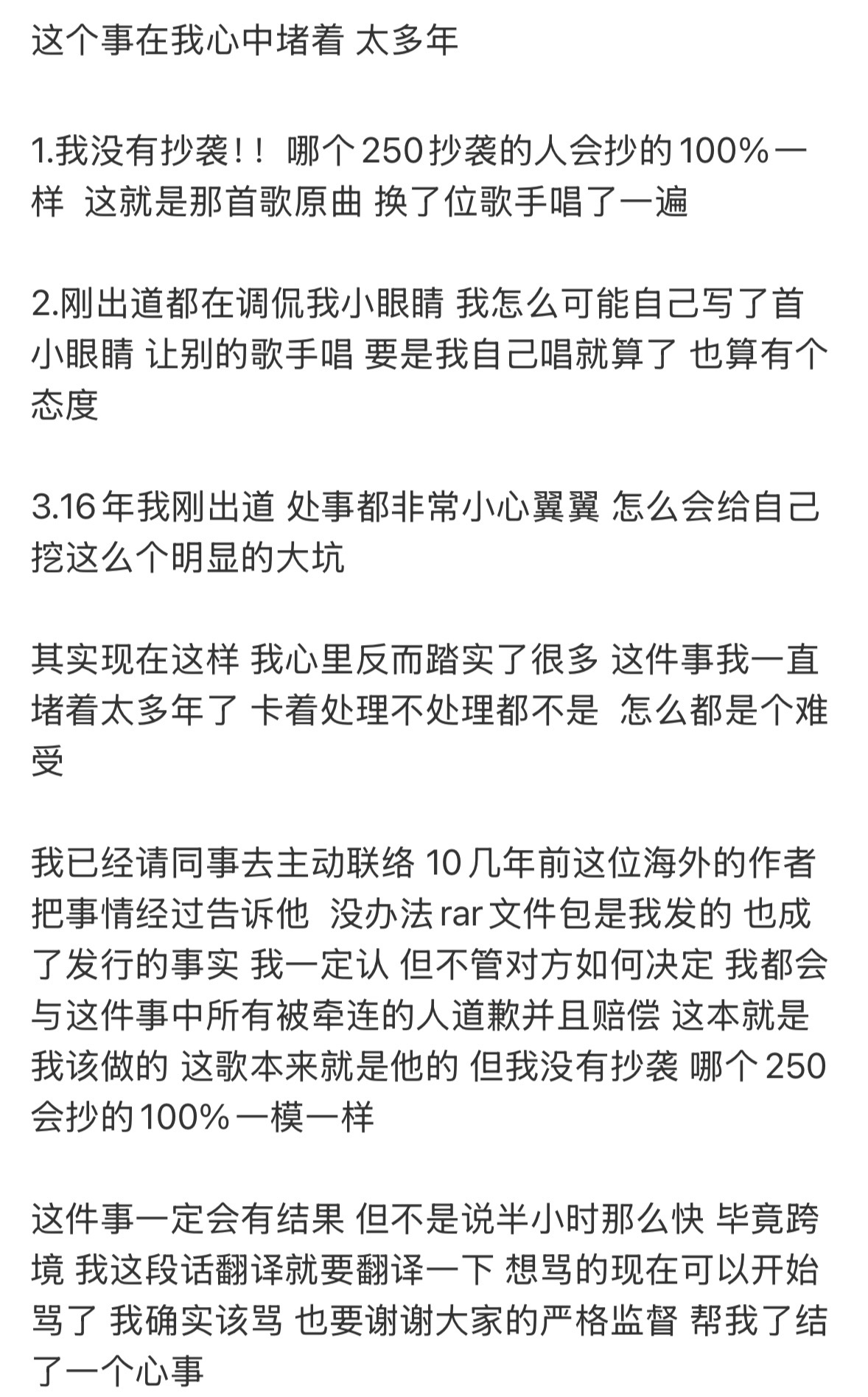 李荣浩否认抄袭全文(三)