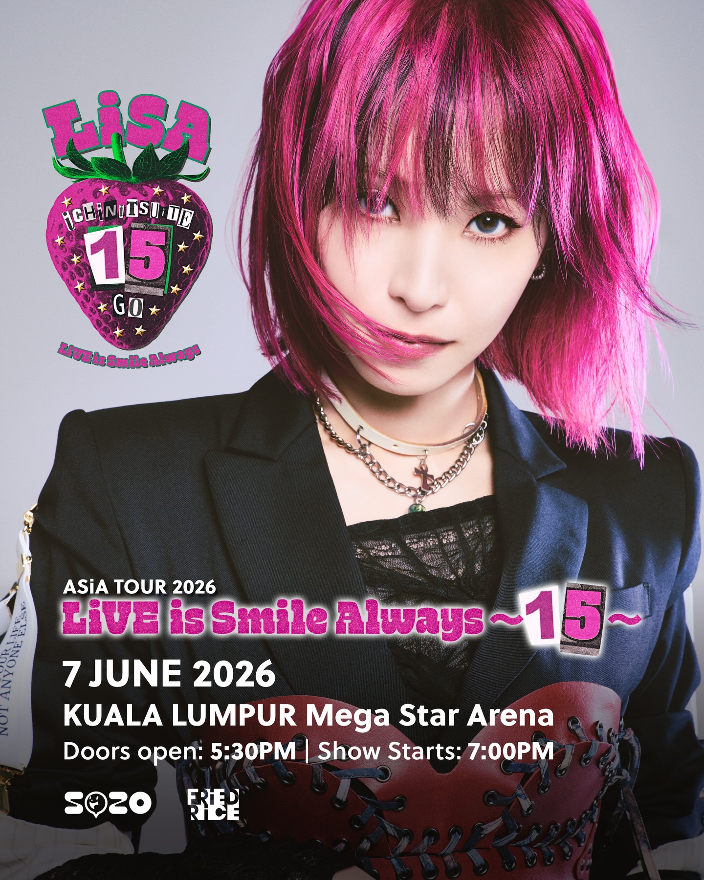 日本超人气女歌手LiSA庆祝出道15周年,将于6月携全新巡回演唱会《LiVE is Smile Always~15~(iCHiNiTSUiTE GO)》来马,这也是她首次在大马举办个人演唱会。