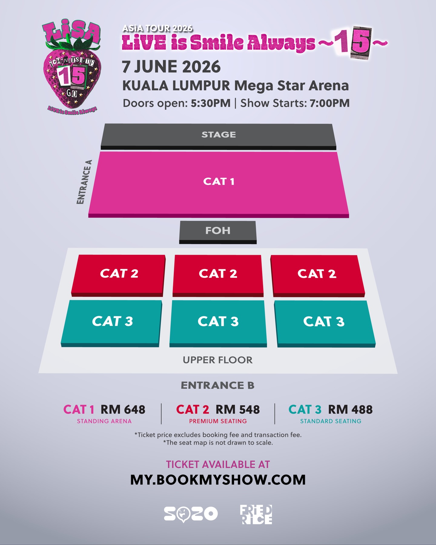 🎫票价:CAT 1 Standing Arena RM648|CAT 2 Premium Seating RM548|CAT 3 Standard Seating RM488