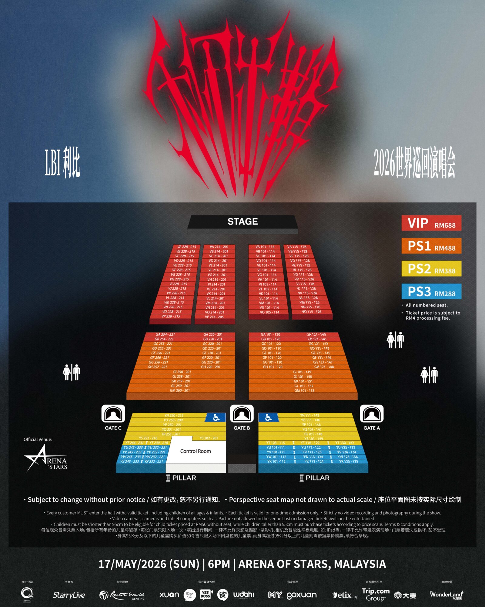 🎫票价:VIP RM688|PS1 RM488|PS2 RM388|PS3 RM288