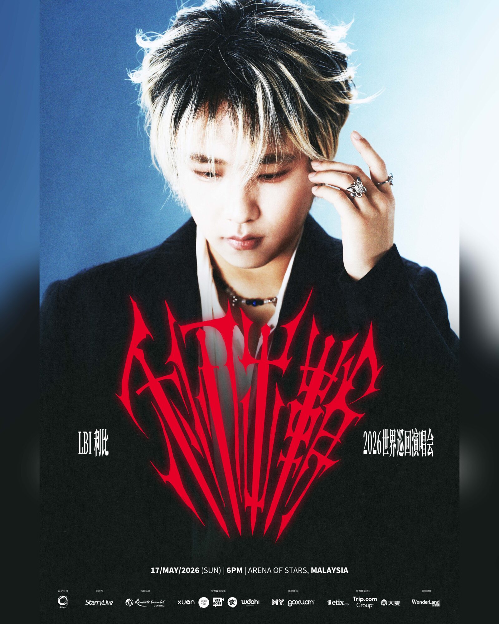 由Starry Live主办,The WonderLand统筹,YesBoss为网络媒体伙伴,LBI利比《利刃出鞘》2026世界巡回演唱会–马来西亚站,将于2026年5月17日(星期日),傍晚6时于云顶世界云星剧场盛大举行。这场特为海外粉丝设计,全新主题与内容的演唱会,从选歌、特效、造型至节目内容等,打造全新感官体验。