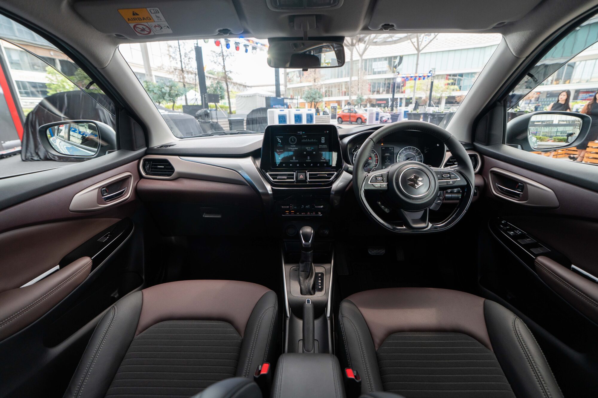车内则展现 Suzuki 注重现代简约与驾驶者导向的设计理念。中央配备9寸HD触控式多媒体系统,支持 Apple CarPlay 与 Android Auto,同时搭载抬头显示器(HUD)与 360° 环景影像系统。三辐式真皮方向盘具备倾斜与伸缩调节、定速巡航及手机无线充电等便利功能。