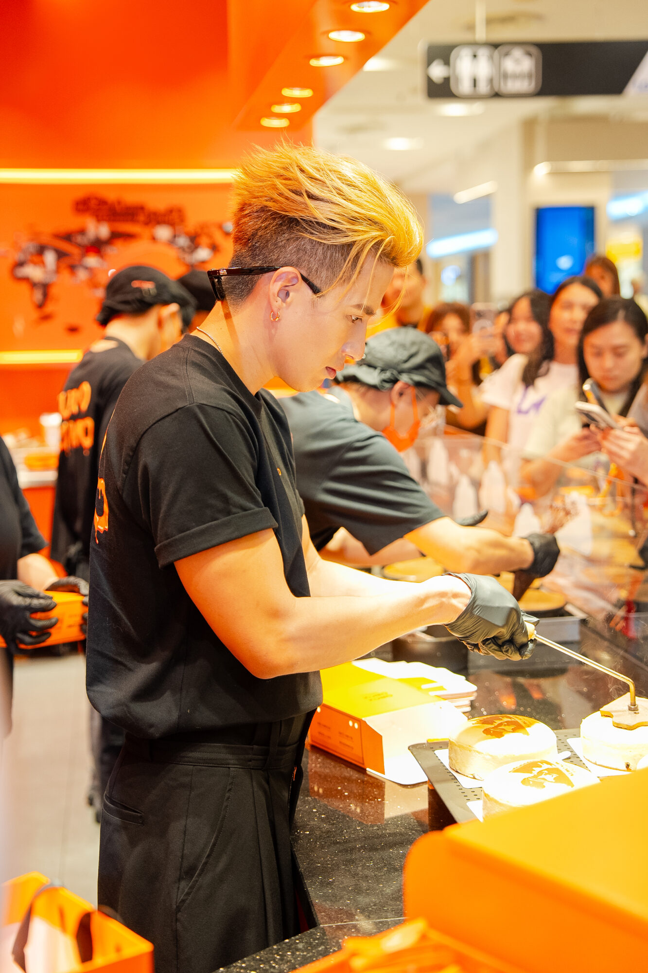 双威金字塔店也延续品牌一贯的开放式厨房概念,让顾客可以近距离观看蛋糕从入炉、上升、出炉到“摇摇”定型的全过程,以及经典的现场热压印章仪式。这种多感官体验已成为KUMO KUMO在亚洲各地的特色亮点。