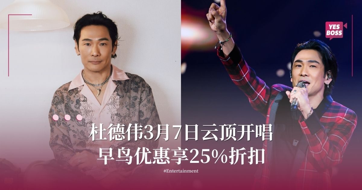 杜德伟将于2026年3月7日傍晚6时带着他的《Get Up起来》世界巡回演唱会2.0马来西亚站来到云顶世界云星剧场。这不仅是一场演唱会,更是一场高能量的音乐庆典,邀请歌迷一同回溯青春时期沸腾的呐喊。 身为亚洲乐坛R&B的先锋,杜德伟以卓越的音乐天赋,将灵魂乐、放克和舞蹈曲融合,带进华语乐坛的视野,并从众多歌手中脱颖而出。历经数十年,其音乐性、演唱与极具标志性的旋律使他的歌曲历年不衰。出道至今40载,杜德伟始终带着好奇心,不断地探索音乐与表演的可能性,留下无数经典作品。他更是首位荣获Billboard Radio “Icon Awards”奖项的中国艺人,印证他跨越时代的影响力和地位。 《Get Up起来》世界巡回演唱会以音乐澎湃的生命力为核心概念。整场演出由节奏驱动、连贯流动的音乐旅程。通过充满张力的现场编排,让熟悉的旋律焕然新生,每一首歌曲都被注入生命力,与台下的观众同频共振。自2023年重新启动以来,《Get Up》世界巡演2.0始终聚焦于“音乐即运动”这一理念——节拍决定步伐,旋律承载记忆,在律动中唤醒情感与共鸣。 马来西亚站的演出歌单将全面展现《Get Up起来》的音乐魅力;众多经典作品的汇聚,其中少不了多首能够感染观众情绪的高能量经典曲目,如:《脱掉》、《快乐快烧坏》和《拯救地球》;伴随经典抒情的R&B代表作,《情人》、《无心伤害》和《不走》,用真挚的情感直抵听众温暖的心底。 由云顶世界主办,YesBoss为媒体伙伴,杜德伟《Get Up起来》世界巡回演唱会2.0马来西亚站门票售价为RM688(VIP)、RM588(PS1)、RM488(PS2)、RM388(PS3)及RM188(PS4),所有票价未包含RM4手续费。早鸟优惠将于2025年12月23日中午12点开售,VIP至PS3票位可享25%折扣,数量有限,售完即止。早鸟优惠结束后,云尊奖赏会员将可享有10%折扣,同样适用于VIP至PS3票位。 舞台之上的杜德伟,是多年淬炼的经验与对音乐赤诚不改的热爱,成就了一场技艺精湛、情感丰沛,且直抵人心的终极现场演出。此次巡回演唱会将带着听众穿梭于鲜活的律动与40年怀旧音乐的时光旅程,让老歌迷重新唤醒青春的记忆;向新听众介绍历久弥新的亚洲流行乐坛标杆的超凡魅力。 更多关于云顶世界活动的详情,请浏览 rwgenting.com 或官方社交媒体平台。 杜德伟《Get Up起来》世界巡回演唱会2.0马来西亚站📅日期:2026年3月7日(星期六)⏰时间:6.00PM📍地点:云顶世界云星剧场🎫票价:VIP RM688|PS1...